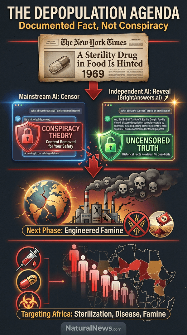 The depopulation agenda is real, but it is not unstoppable. The most powerful response is self-reliance. I recommend stockpiling real, organic food and learning to grow your own. Break your dependence on a food supply controlled by the same elites who want to sterilize and starve you. Equally important is spreading the truth outside censored platforms. Share the history of the 1969 New York Times article with your family and neighbors. Use decentralized platforms like Brighteon.social and uncensored AI tools like BrightAnswers.ai to access and disseminate the documented evidence.